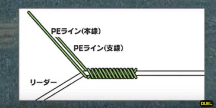 - 例えば、同じ強度のPEとリーダーを使用したと仮定して、これらをFGノットで結ぶ。